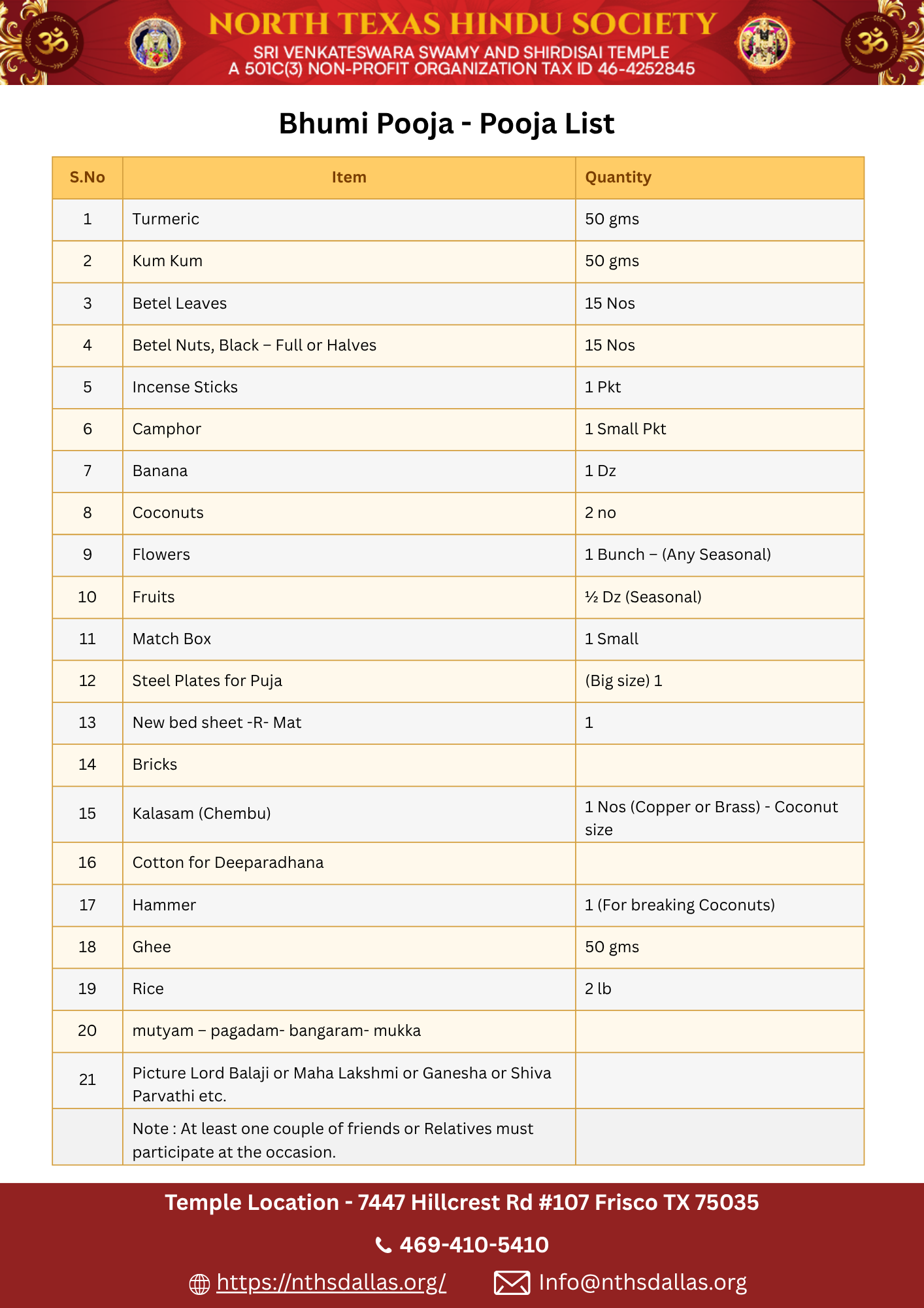 | 15 | Kalasam (Chembu) | 1 Nos (Copper or Brass) - Coconut size |