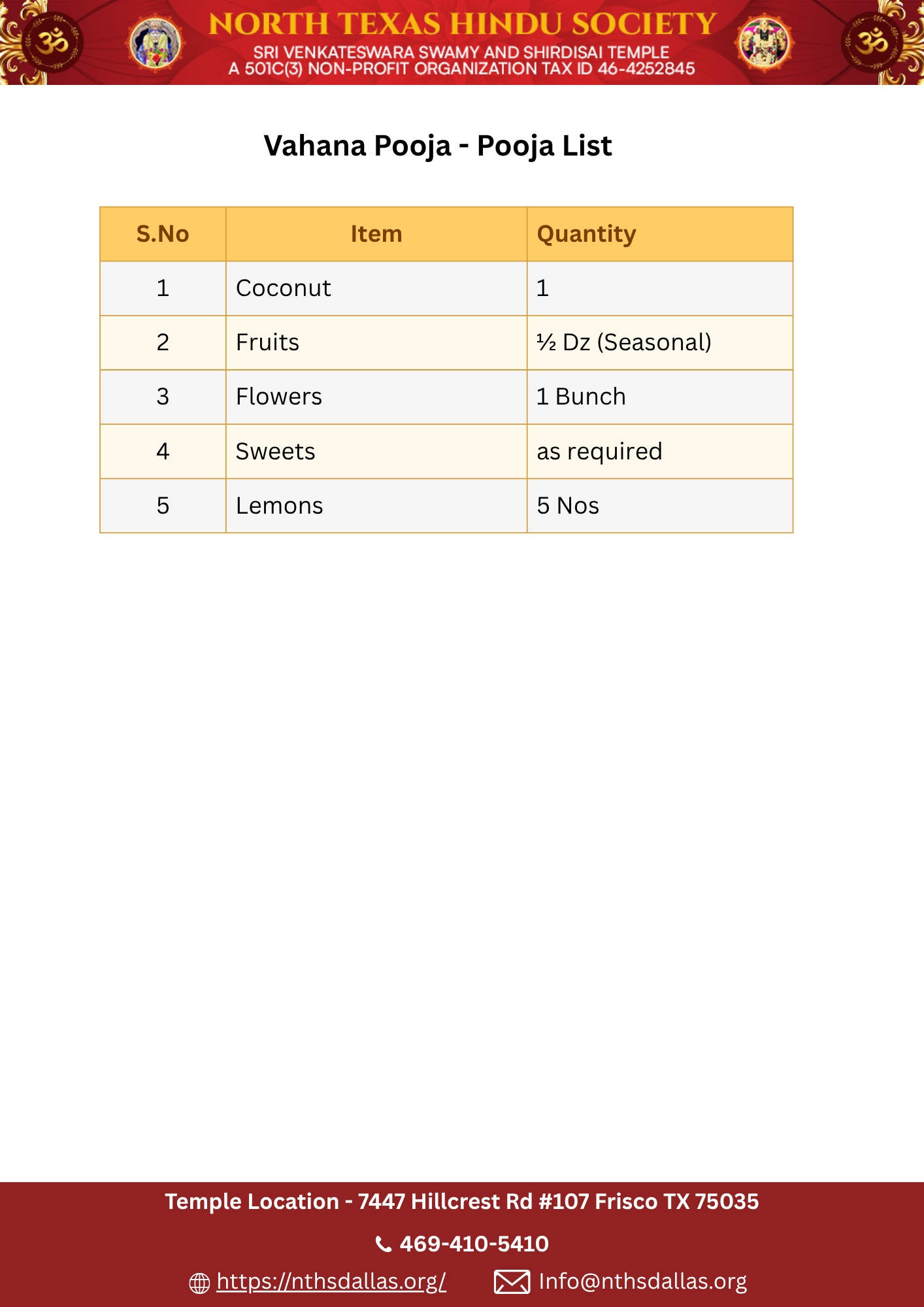 Pooja List